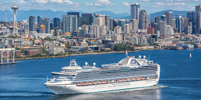 Princess Cruises is one among the popular cruise liner companies. With 16 cruise ships and new ships being added from time to time, this company runs cruises all over the globe. Princess Cruises cover all the seven continents. Ships of princess cruises use the famous "Sea Witch" logo and run cruise trips to Caribbean, Canada, South America, Hawaii, Australia and New Zealand, Asia, Europe etc. besides Alaska specials. The conduct of cruise trips from on-boarding the travellers till they are disembarked at conclusion of the trip has to go like clock-work and coordinated between various agencies throughout the tour. Picture given above is taken as the ship is leaving Seattle harbour and shows the Seattle downtown skyline.